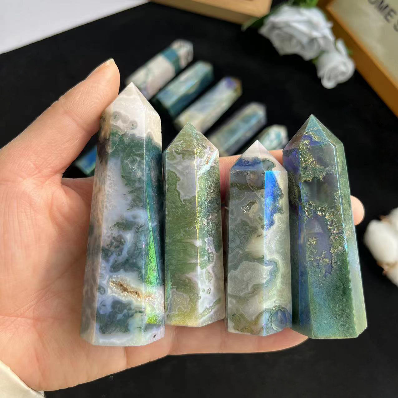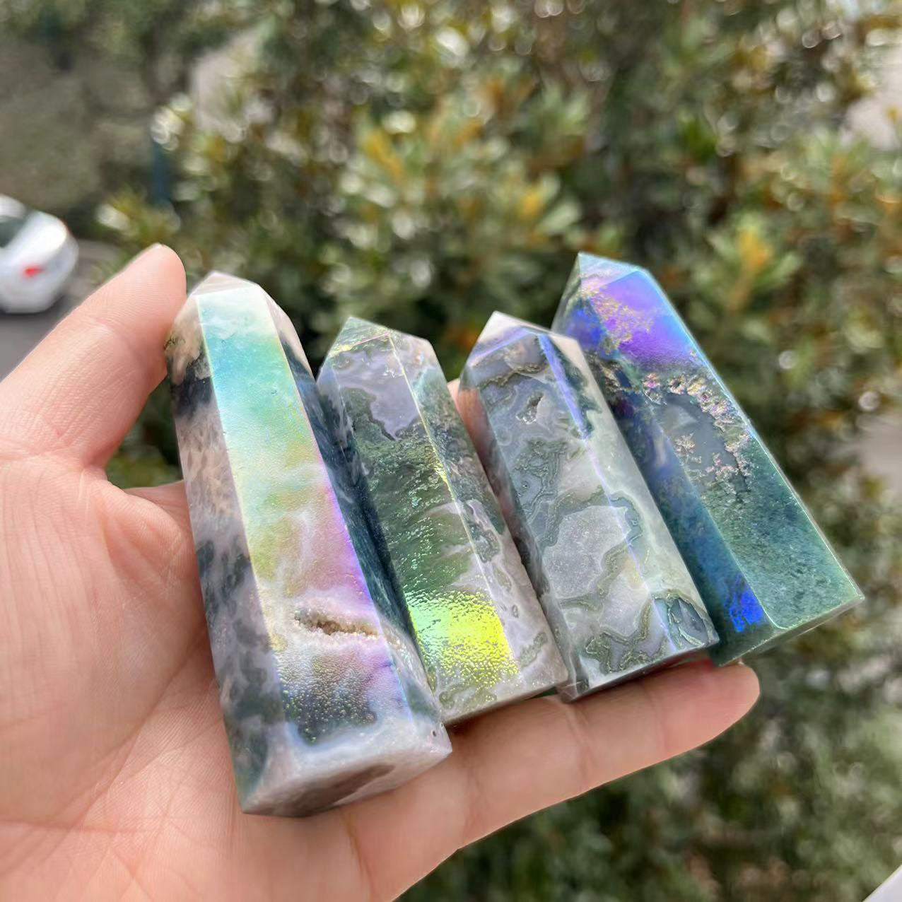 Angel Aura Moss Agate Point Wands