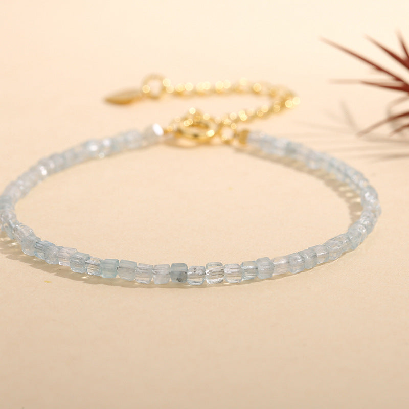 Aquamarine Cube Shape 2.5mm Facet Bracelets