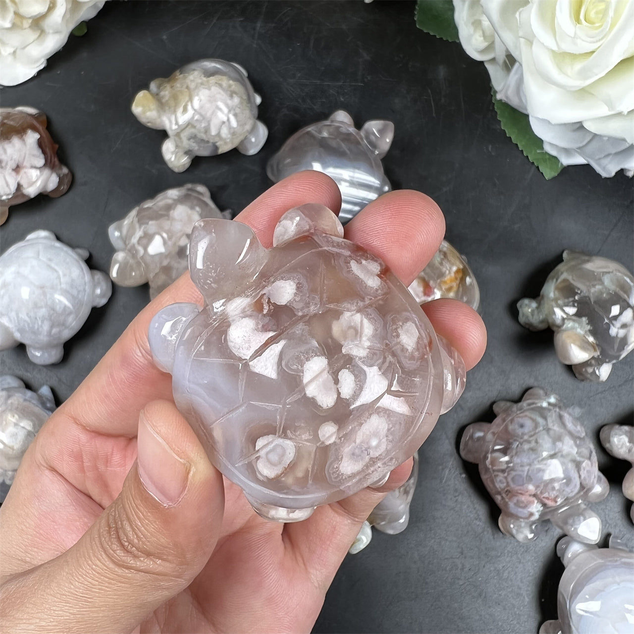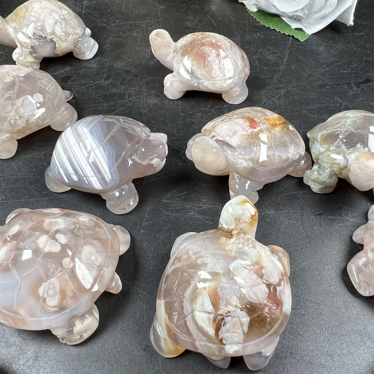 Cherry Blossom Agate Turtle Carvings
