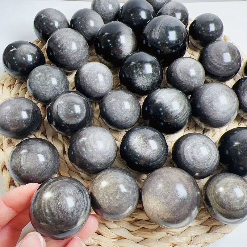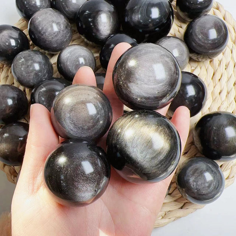 Strong Flash Silver Obsidian Spheres